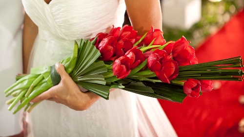 Podemos encontrar também buquês em pérolas, pedras, tecidos, broches e flores artificiais. Mas, o buquê de flores naturais ainda é preferência entre as noivas.